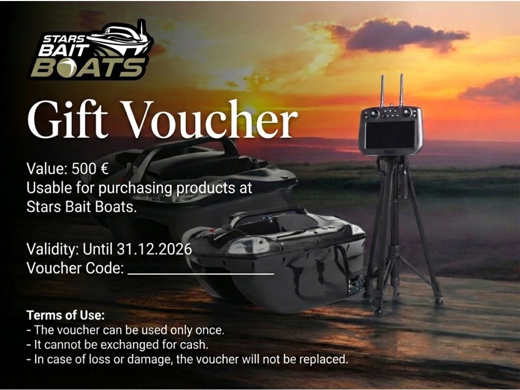 Niekto, kto vás má rád, vám daroval poukážku na nákup v e-shope www.starsfishing.sk . Či už sa rozhodnete pre zavážaciu lodku Stars Bait Boats alebo pre loďku značky Ryppton , každý kúsok z nášho e-shopu prispeje k tomu, že si užijete rybolov s najmodernejšou technológiou ktorá je momentálne na trhu k dispozícii ,